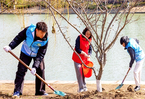 今天是我国第48个植树节。春风拂沃野,植绿正当时。各地纷纷开展植树活动,为大自然增添新绿,助力生态保护,共建美丽家园。图为江苏省泰州市组织开展的“青衿植绿共赴春光”青年人才植树活动现场,青年志愿者在泰州市海棠岛品质文化园为树木松土、施肥、浇水。
