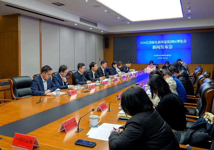 3月26日下午,江苏省住房和城乡建设厅召开新闻发布会,介绍2026江苏绿色低碳建筑国际博览会相关情况,副厅长路宏伟作新闻发布。
