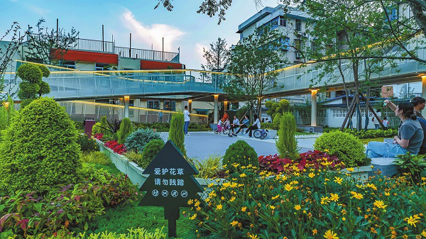 “走,到家门口公园遛弯去!”傍晚时分,江苏省南京市罗廊巷罗廊西村居民招呼着老伴,走进家旁那片约1995平方米的绿色空间。公园绿意摇曳,空中活力廊道蜿蜒穿梭,滑板场内孩子们尽情嬉戏……谁能想到,两年前这里还是一片低矮逼仄的棚户区。作为南京入选全国首批城市更新试点后的重点民生项目,罗廊巷以西口袋公园以“小切口”破解老城空间治理难题,成为“把最好的资源留给人民”的生动实践。