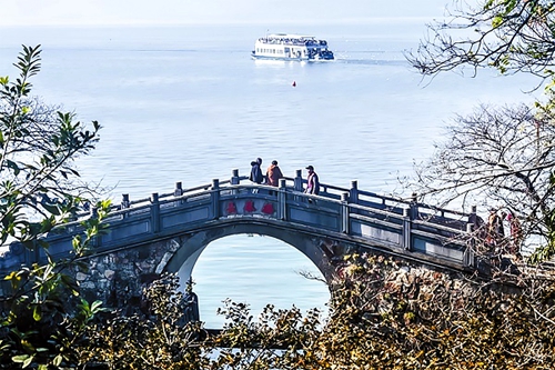 长春桥位于江苏省无锡市太湖鼋头渚风景区内,建于1936年。桥体为单孔石拱桥结构,采用典型的江南园林造桥技法,桥体两侧设有雕花青石护栏,栏杆柱头雕刻着莲瓣纹样,为桥梁增添了艺术价值和文化内涵。图为长春桥。